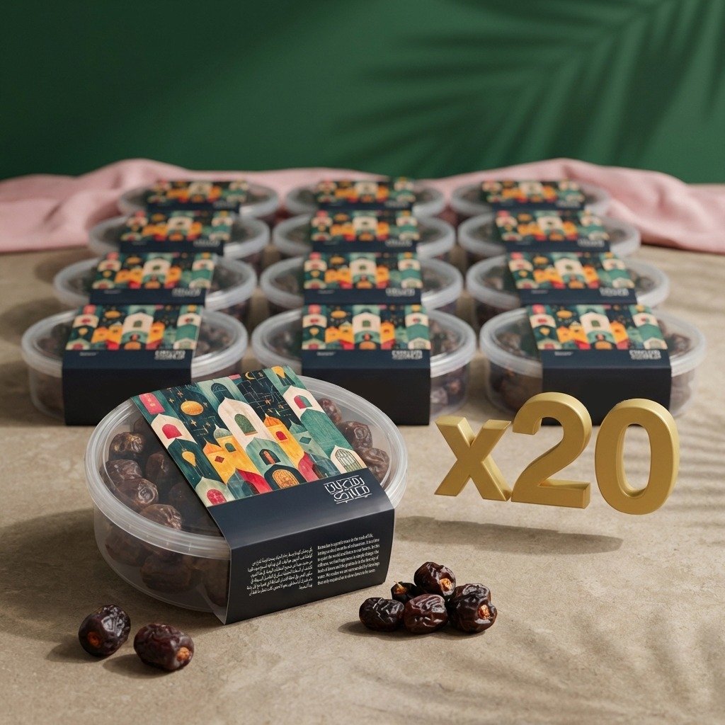 تمتع بروح رمضان مع هدية رمضانية فاخرة تجمع بين الأصالة والجودة. "20 علبة عجوة فاخرة مغلفة بأسلوب رمضاني" هي الاختيار الأمثل لكل من يبحث عن تقديم هدية تحمل في طياتها عبق المدينة وجمالها. مع تغليف رمضاني جاهز للإهداء، فإن هذا المنتج هو الخيار الأمثل للزيارات والهدايا الخاصة خلال شهر رمضان المبارك.